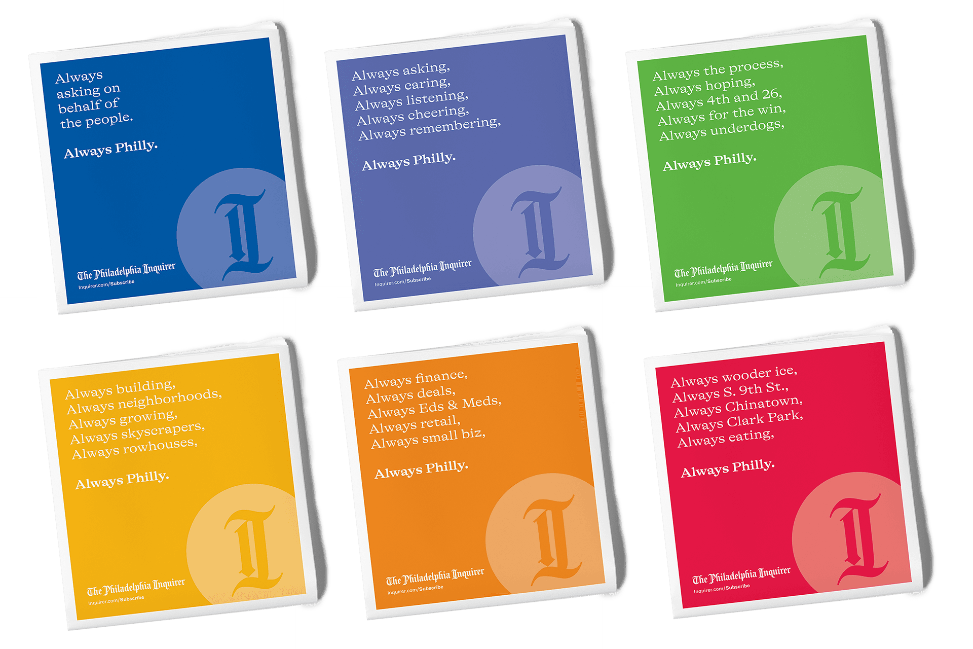 “Always Philly” celebrates The Philadelphia Inquirer’s longstanding commitment to serving the region through local journalism. I developed the creative concept, using language to echo the brand tagline and reinforce its mission-driven voice.